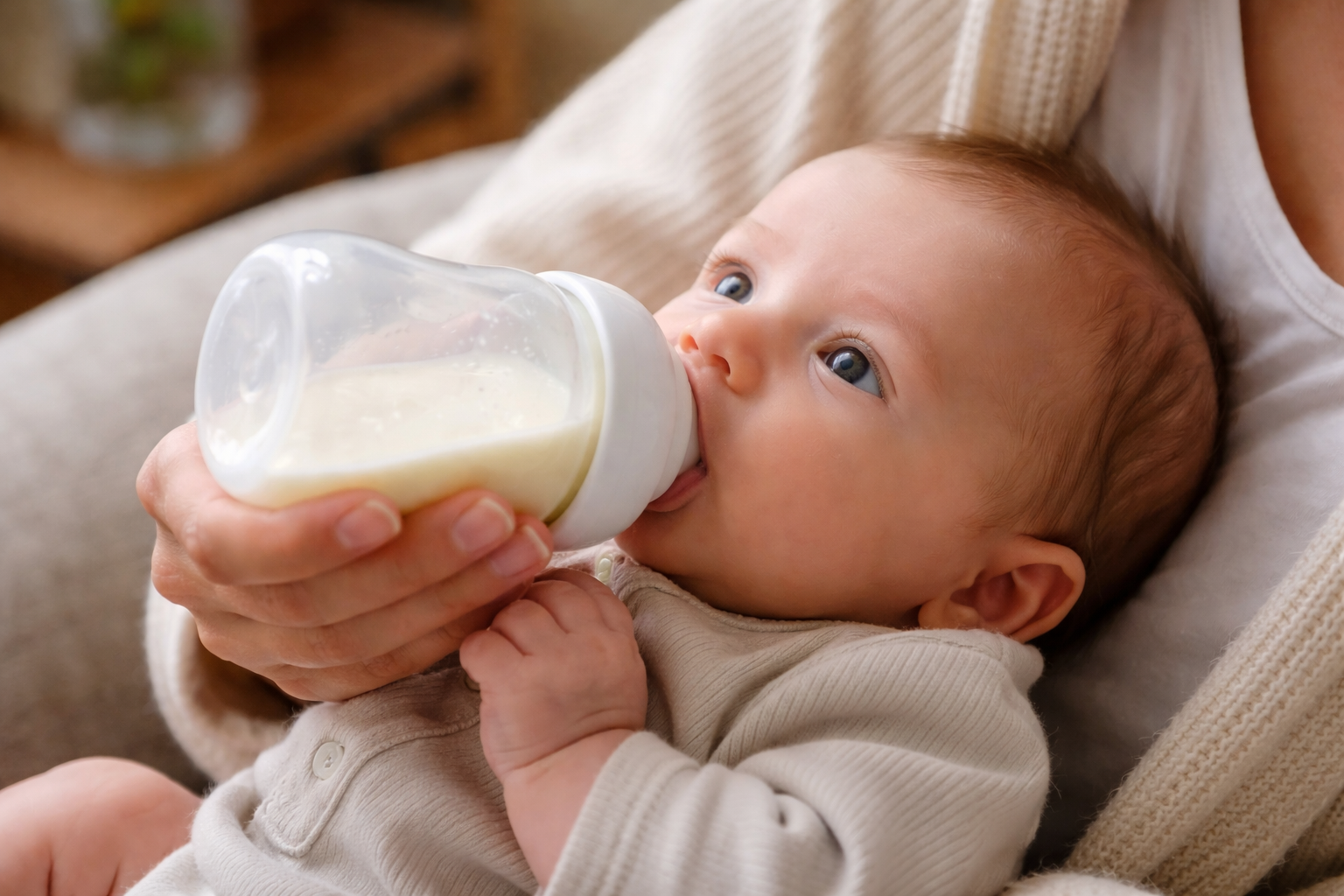 En pratique, on propose 90–120 mL par tétée de lait maternel ou de lait infantile, toutes les 3 à 4 heures. Restez attentif aux signes de faim comme la succion active ou la recherche du sein.